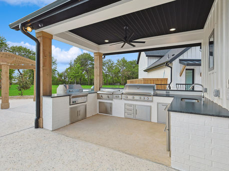 From blueprint to completion — a 5,000 sq. ft. luxury home featuring marble flooring, custom kitchen cabinetry, modern black siding, and a full 3D design preview so the client could visualize every detail before construction began.